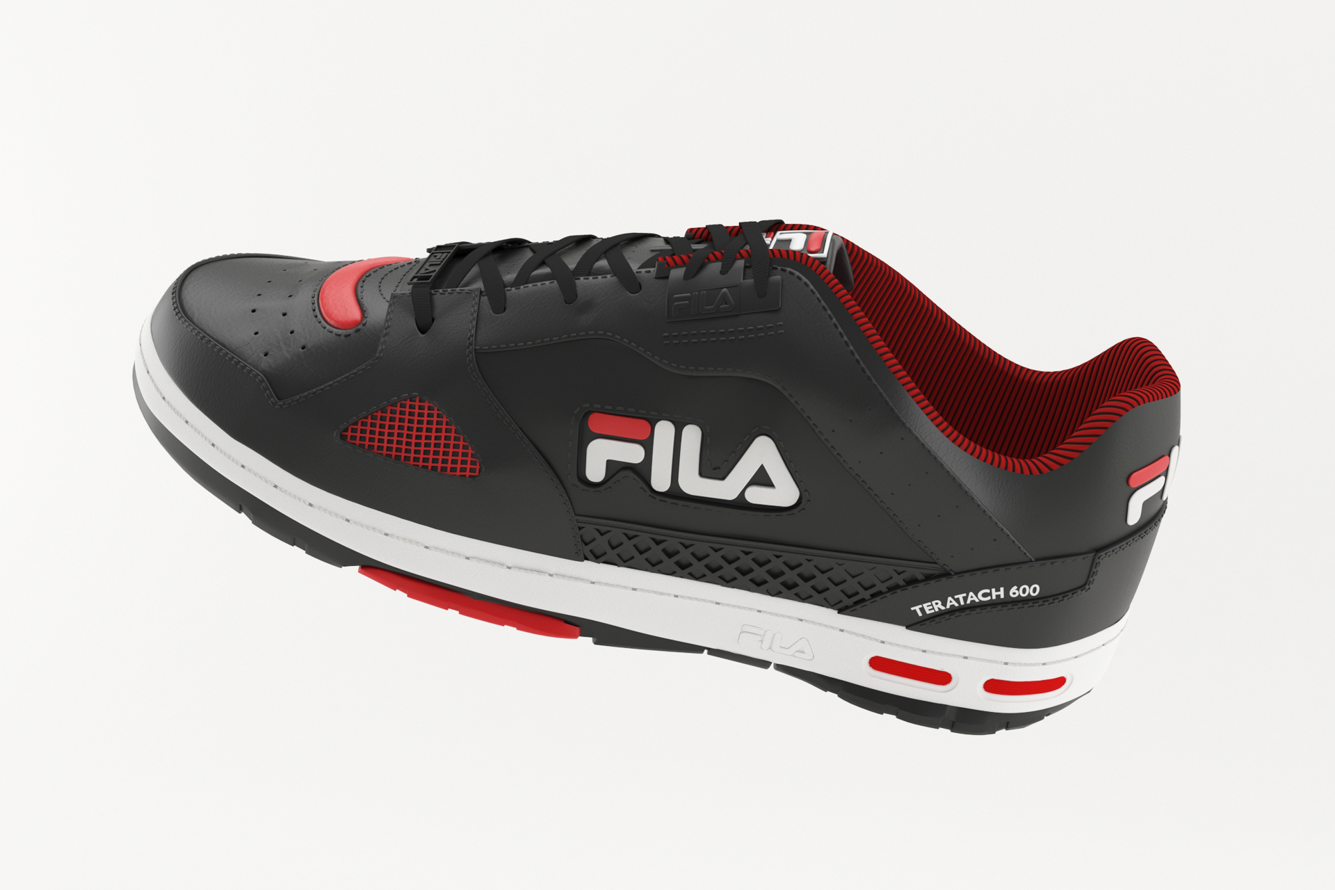 As part of our collaboration with Fila, we also used 3D CGI (computer-generated images) to recreate some of the brand's best-selling shoes, including the Disruptor2 , Hallasan, Electrove, and Teratach 600 models. To do this, we began by obtaining the physical shoes and using photogrammetry to take hundreds of pictures, which we then used to create a basic 3D model.